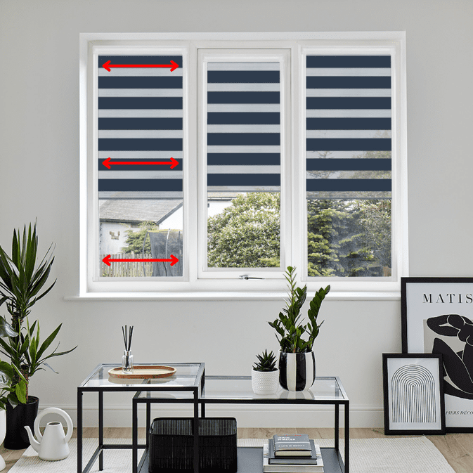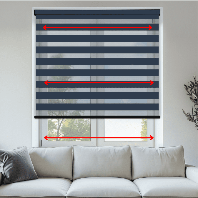 They operate like a roller blind, but use alternating sheer and opaque fabric panels to control light and privacy.